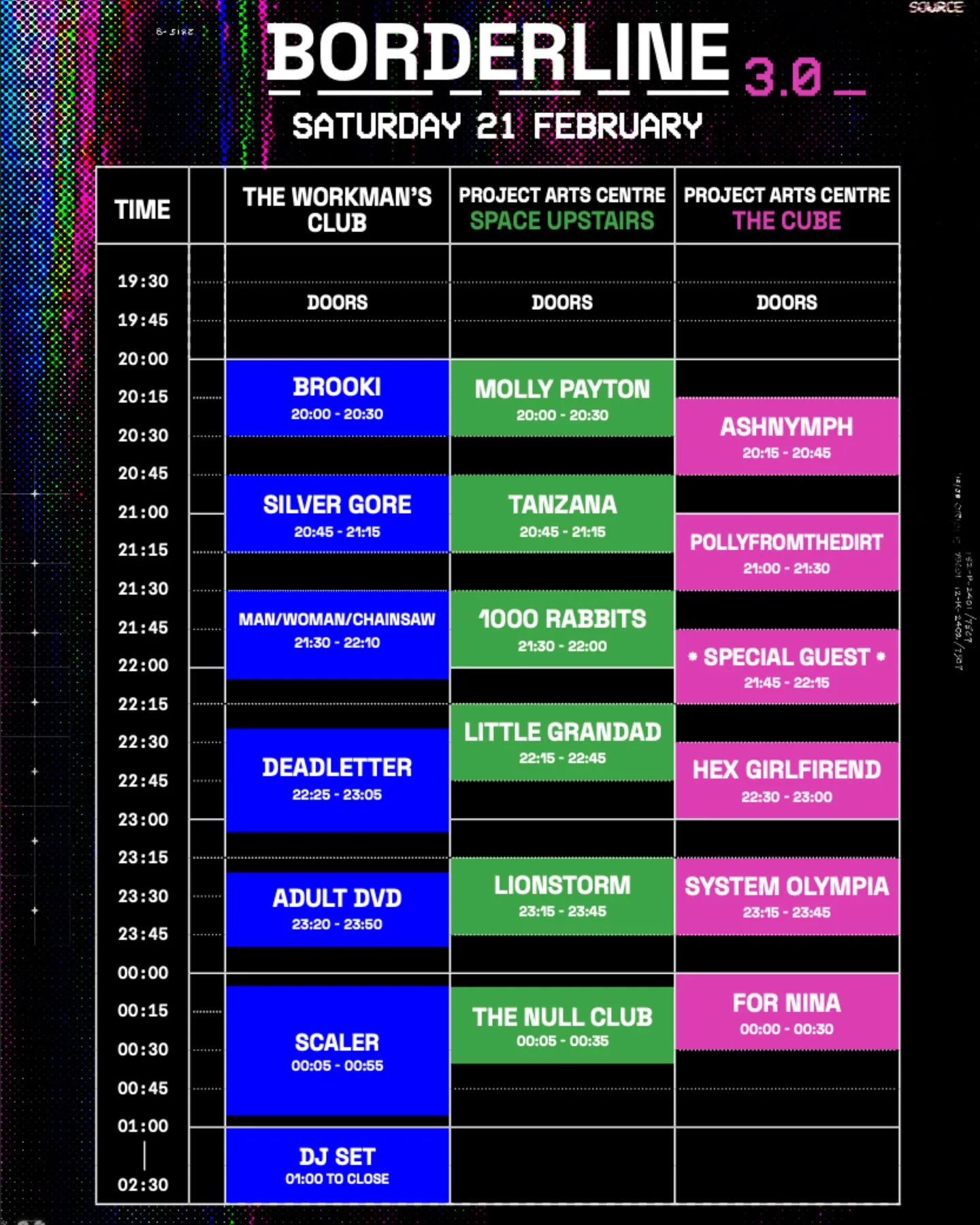 Saturday: 1000 Rabbits, Adult DVD, System Olympia, The Null Club, Ashnymph, Silver Gore, For Nina, Scaler, Brooki, Tanzana