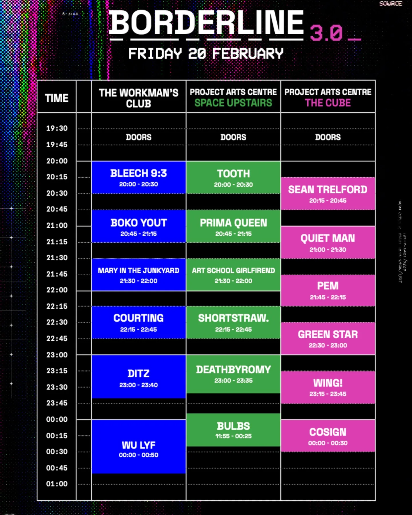 Friday: WU LYF, Pem, Art School Girlfriend, Prima Queen, DeathbyRomy, wing!, cosign, Mary In The Junkyard, DITZ, Courting.