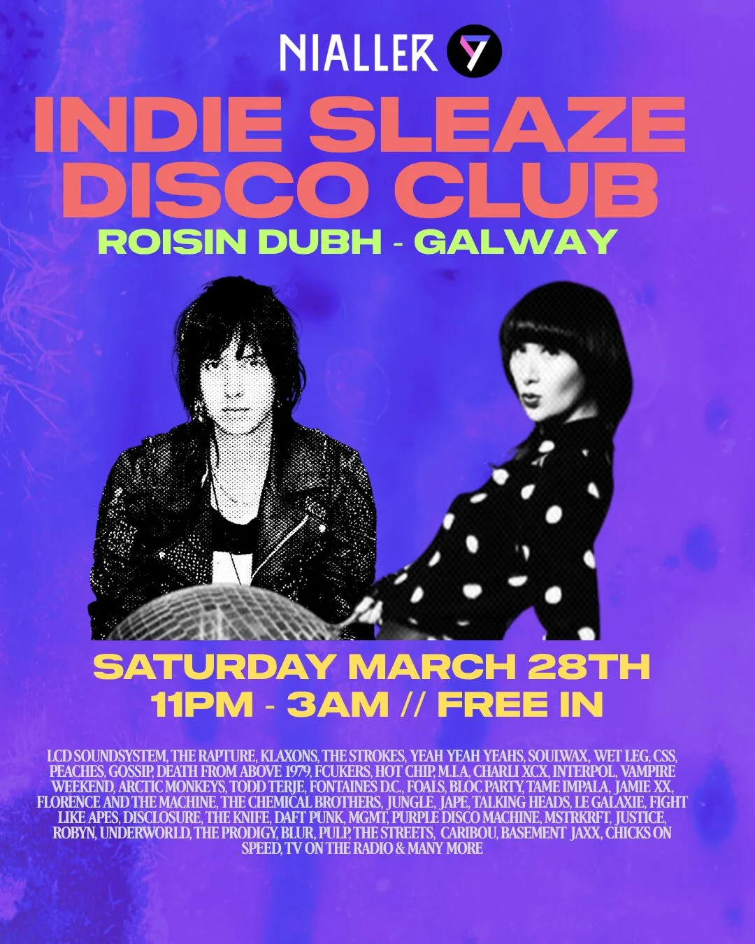 Join Nialler9 for the first Galway edition of the popular indie sleaze disco, indie and dance classic club from your favourites back then to present day sleaze-inspired tracks.
